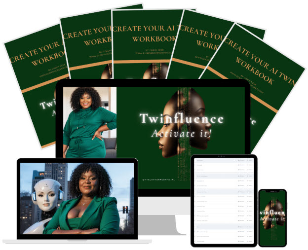 Twinfluence is a self-paced course that teaches you how to train your AI twin to create content that looks like you and shows up for your brand 24/7—so you can finally stay consistent without burning out.
