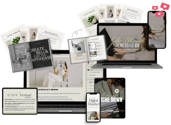 Here’s What You Get: · Create with Ease ($67 value) · Sell & Launch with Ease ($47 value) · Grow with Ease ($83 value) · The Ultimate Resell Bundle ($47 value) · The Ultimate Digital Product Planner ($17 value) · How To Niche Down Workbook ($27 value) · The Ultimate Growth Guide ($67 value)